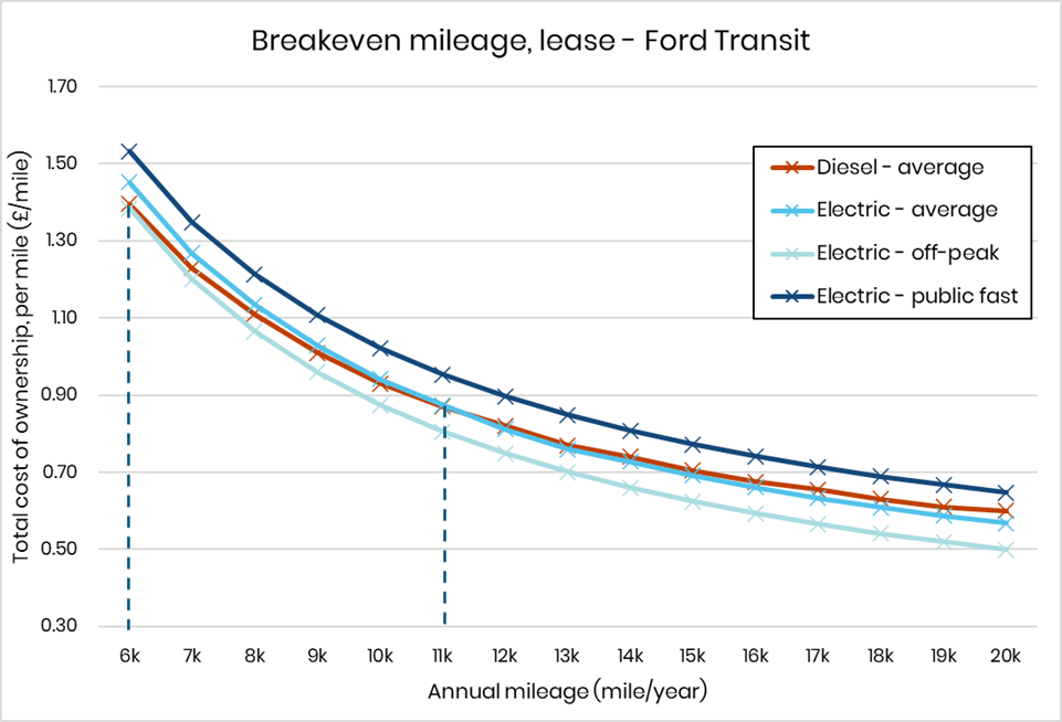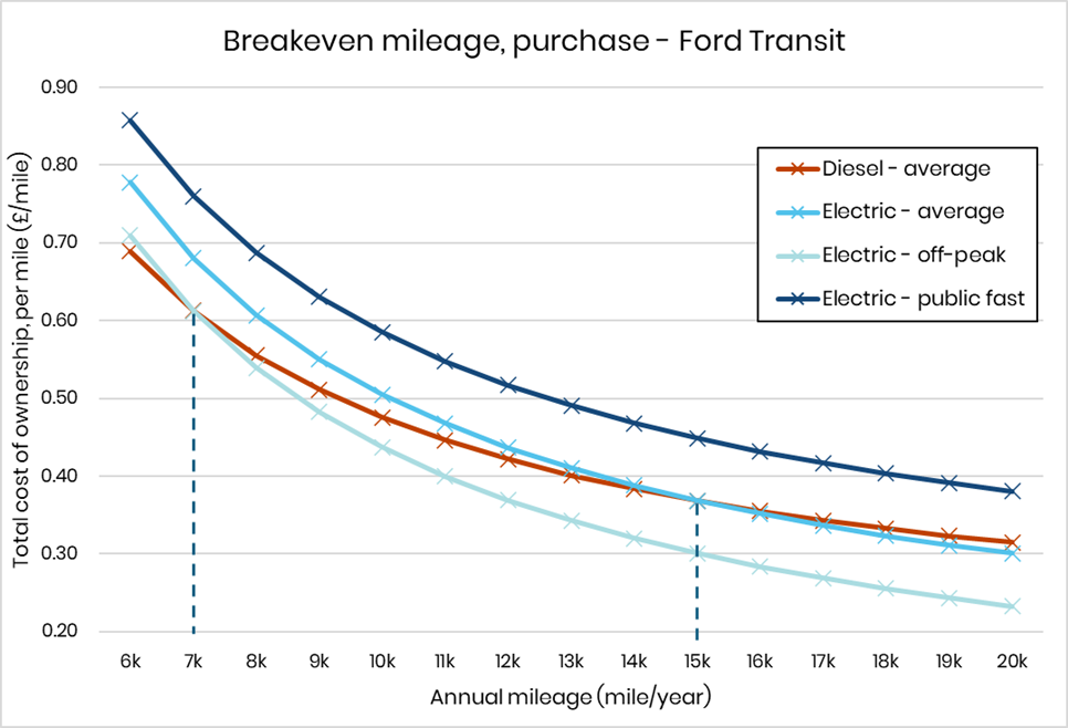 In these graphs we have also included the costs for BEVs based on an average, off-peak, and public costs of charging. We would recommend a majority of depot-based charging to avoid the higher costs of public charging.